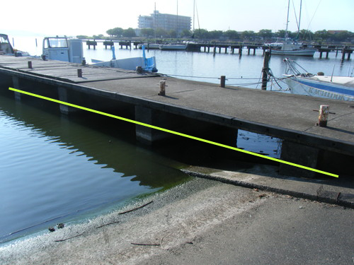十年前頃は線の所あたりが平常水位だった。