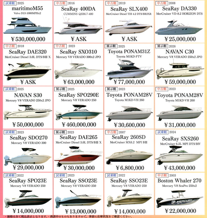 展示艇に試乗艇などの中古艇!